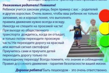 Личный пример взрослого в соблюдении правил дорожного движения и есть проявление заботы о безопасности детей – нашего будущего!