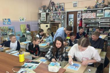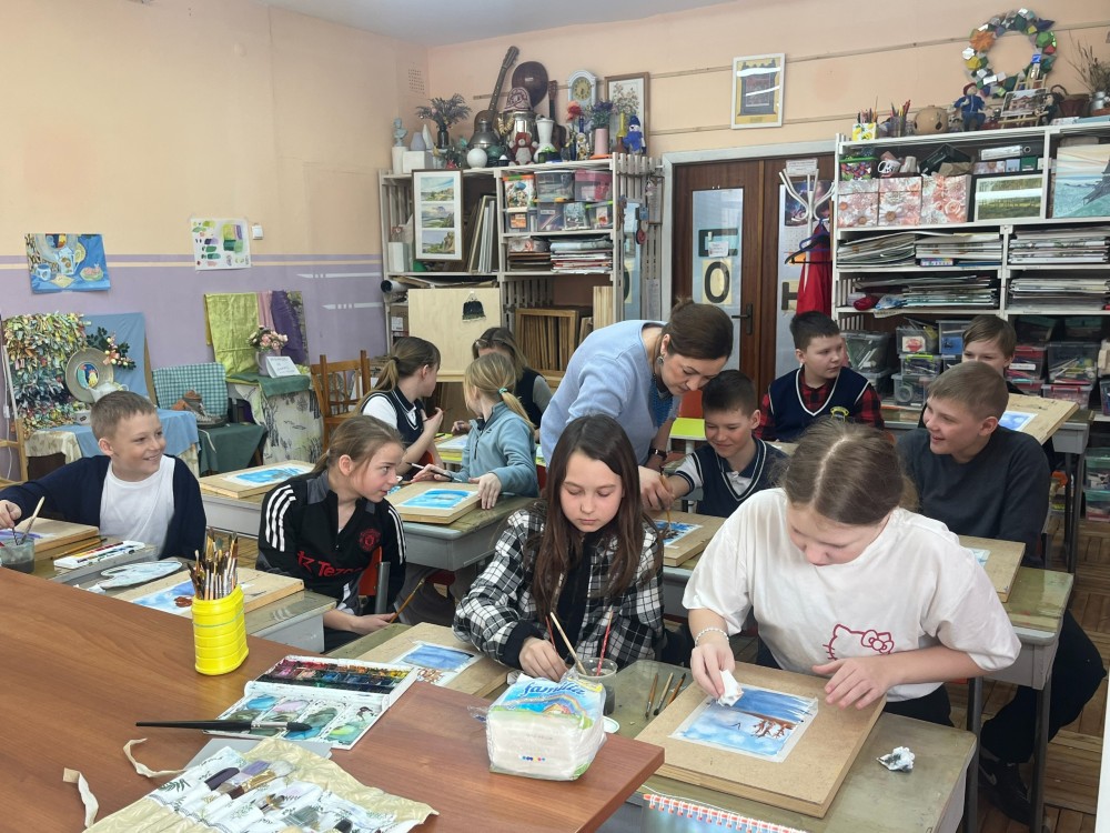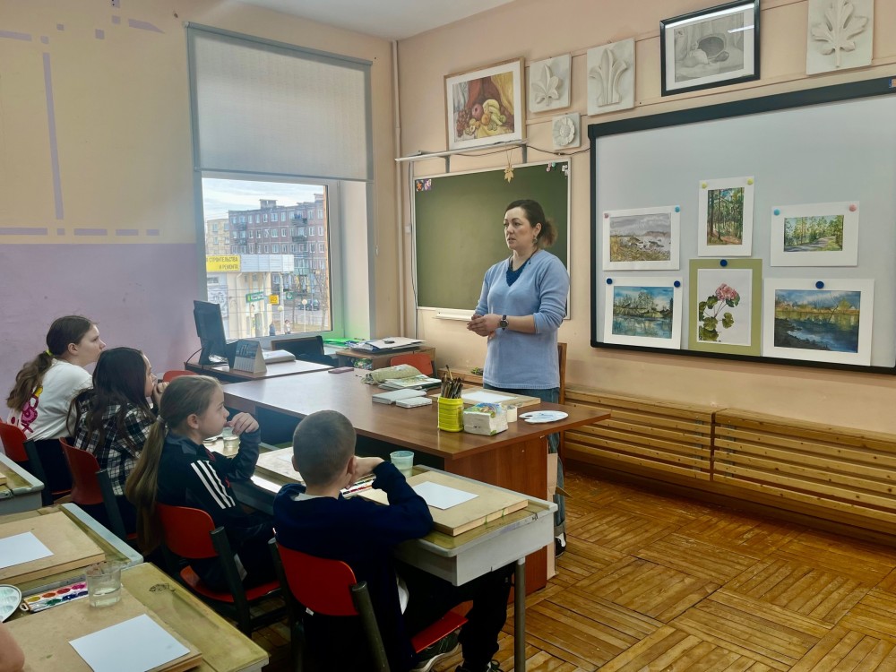 Ольга Константиновна Жаруева провела увлекательное занятие, посвящённое выбору будущей профессии и искусству. Ольга Константиновна рассказала о профессии педагога – художника, о своем пути в профессию. Но самое интересное ждало впереди! Ребята приняли участие в мастер-классе по рисованию акварелью и создали свои маленькие шедевры.